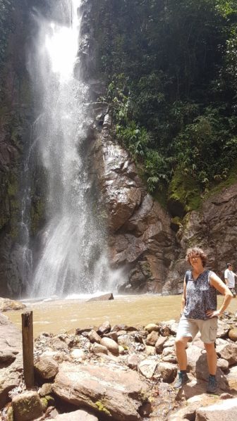 Dort besuchten wir die Catarata del Tirol. Nach einer 10-minütigen Fahrt im Mototaxi führt ein schön angelegter Weg in einem halbstündigen Fussmarsch durch die üppige Natur zum Wasserfall, der seinen Namen in Anlehnung an die Besiedlung des westlichen Teils der Region durch Auswanderer aus dem Tirol erhalten hat.