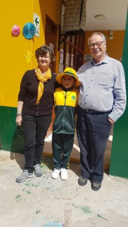 Schon in der zweiten Woche wartete eine grosse Überraschung auf die Kinder. Eines Morgens – am peruanischen Tag des Kindes – standen Eltern und Kinder vor einer geschlossenen Schultüre. Bereits wurde es unruhig. Da öffneten die Lehrpersonen die Pforte. Der Schulhof war festlich dekoriert. Ein grosses Fest für die Kinder mit Vorführungen, Tanz und feinem Kuchen war von den Lehrpersonen vorbereitet. Die Kinder haben diese Überraschung verdient und es wurde ein prächtiger «Schultag». Der ganze Anlass konnte von dem Geld bezahlt werden, welches Simone und Martin im Namen von Theres zu Gunsten eines «Zvieri» für die Kinder von Yachay im April nach Huancayo mitgebracht hatten.