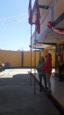 Am Montag, 15. April 2019, wurden wir – Simone, Felix und Martin wie gewohnt herzlich von den Lehrpersonen und den Kindern der Schule Yachay mit der üblichen Fahnenzeremonie, Gedichten, Liedern und einem kleinen Geschenk willkommen geheissen. Felix durfte natürlich die Schweizerfahne hissen.