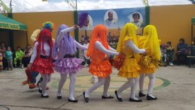 Das Fest begann ca. um 9:30 Uhr mit dem Hissen der peruanischen und der schweizer Flagge. Danach wurden die National- und Regionalhymne gesungen, und auch ein Vater Unser wurde gebetet. Dann hielt Giovanna eine kurze Ansprache zur Feier und deren Ablauf, bevor auch schon die Vorstellungen der Kinder anfingen.