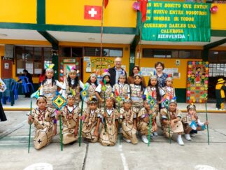 Die Schule war für unseren Empfang schön dekoriert. Mit kulturellen Darbietungen aller Klassen und herzlichen Begrüssungsworten von Lehrpersonen, Schülern und einer Mutter als Elternvertretung wurden wir an Yachay willkommen geheissen. Es war ein schöner und berührender Moment für uns alle.