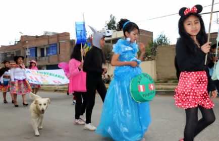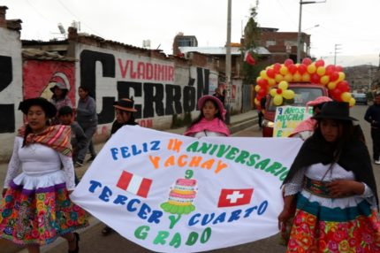 Die Präsentation der Schule mit einem Umzug durch das Quartier und die anschliessende Chocolatada für die Schülerinnen und Schüler, deren Eltern und Nachbarn sind ein fester Bestandteil der Jubiläumsaktivitäten unserer Schule.