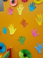 Gemeinsam erstellte jede Klasse einen mural – ein grosses Wandplakat. Die Plakate lassen sich sehen und wecken die Vorfreude auf die kommenden Tage. Die gemeinsame kreative Arbeit hat den Schülerinnen und Schüler sichtlich Spass gemacht.