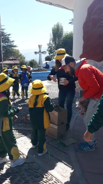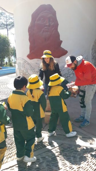 Am Montag, 15. April 2019, wurden wir – Simone, Felix und Martin wie gewohnt herzlich von den Lehrpersonen und den Kindern der Schule Yachay mit der üblichen Fahnenzeremonie, Gedichten, Liedern und einem kleinen Geschenk willkommen geheissen. Felix durfte natürlich die Schweizerfahne hissen.
